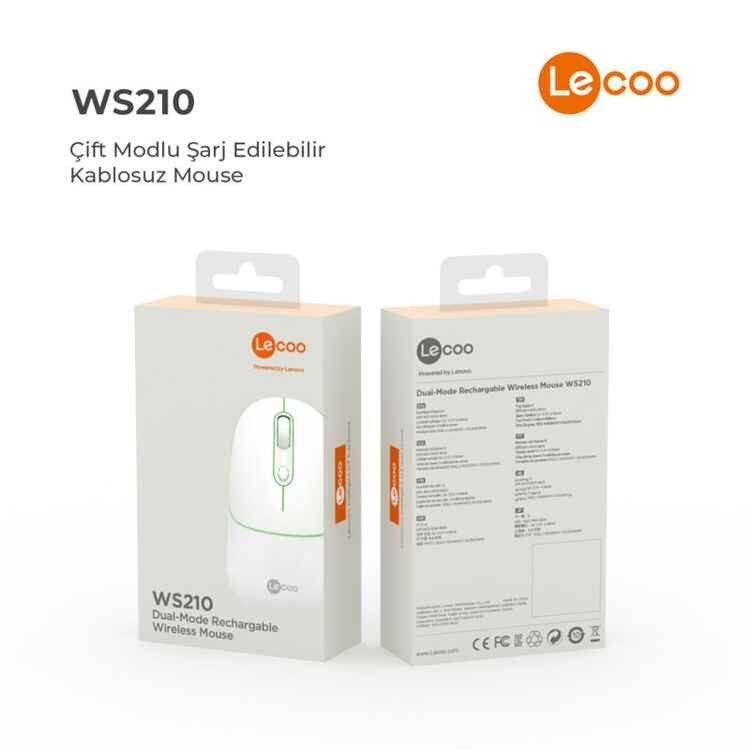 Lenovo Lecoo WS210 Beyaz RGB Şarjlı Sessiz Ergonomik Optik Kablosuz Mouse